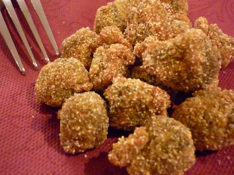Scolatele e una volta tiepide, passatele nelle uova sbattute e poi nella farina di grano duro.